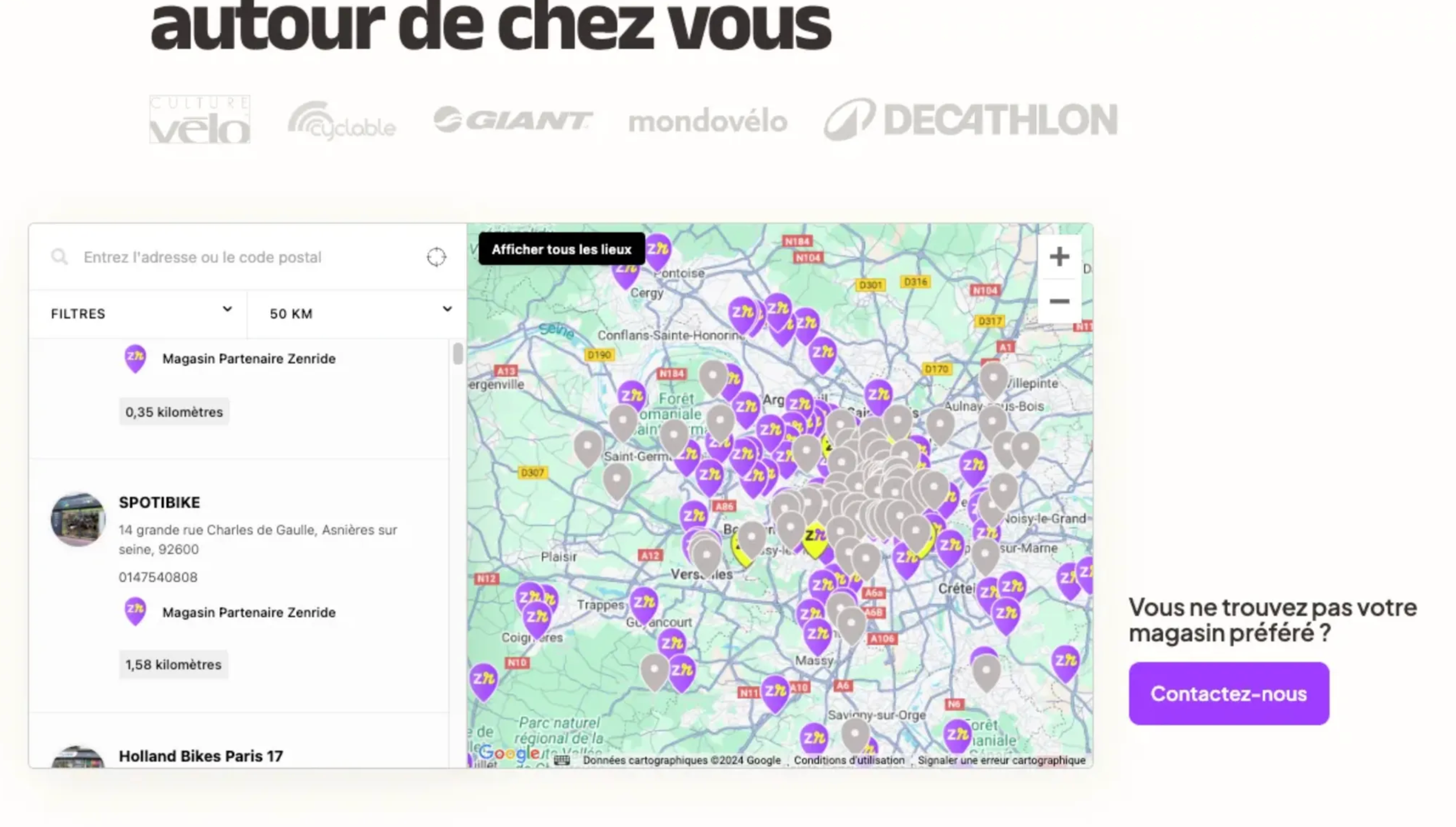 Sur notre site vitrine et dans le parcours utilisateur, vous remarquerez des points gris sur la carte, symbolisant les magasins qui ne sont pas partenaires. En cliquant sur l'un de ces points gris, vous aurez la possibilité de demander l'ajout de ce magasin en remplissant ce formulaire dédié.